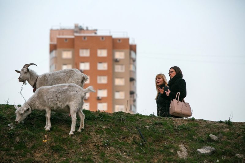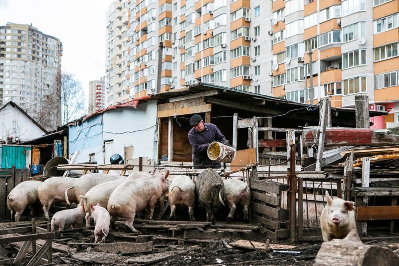 Судя по фото, опубликованным в интернете, ни владелицу фермы, ни самих животных не смущает расположение рядом высоток и жилого городского микрорайона.