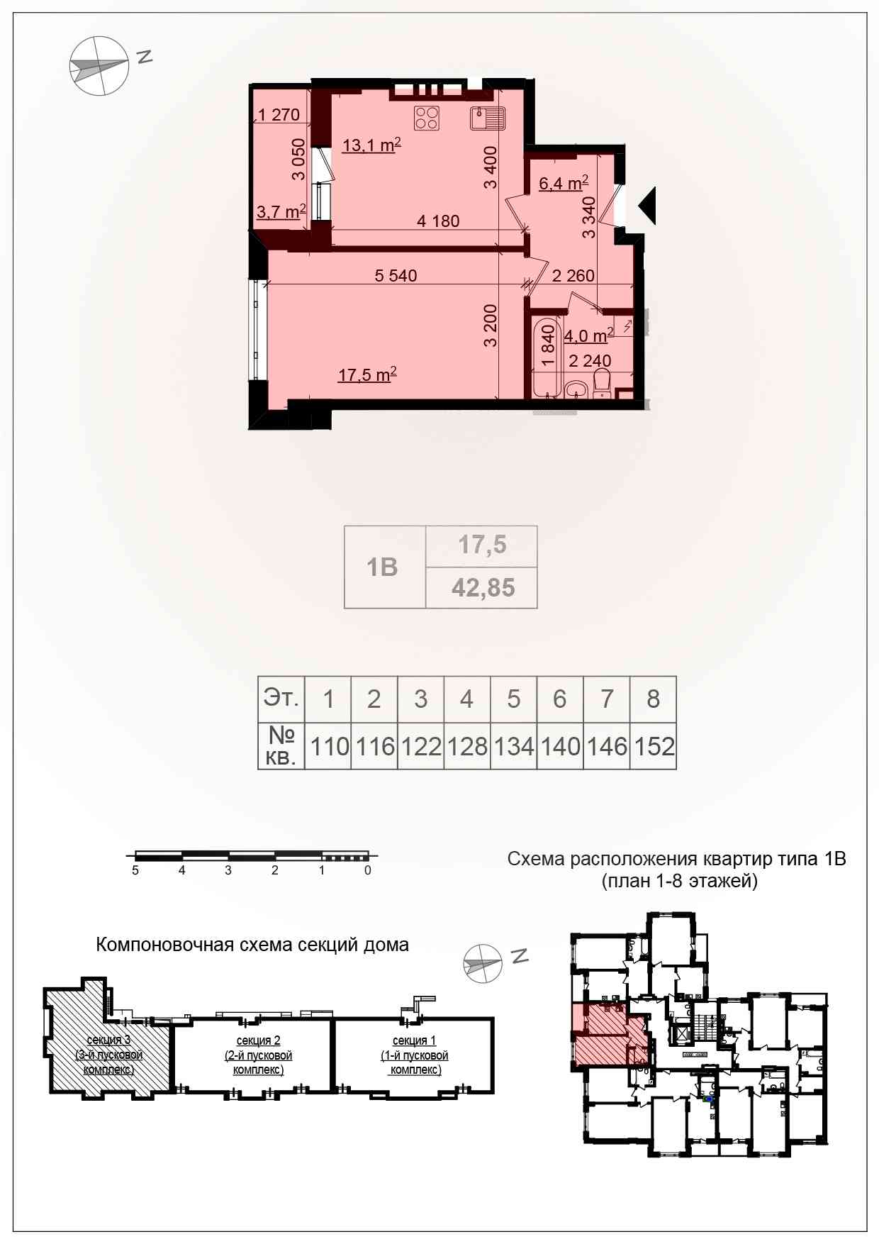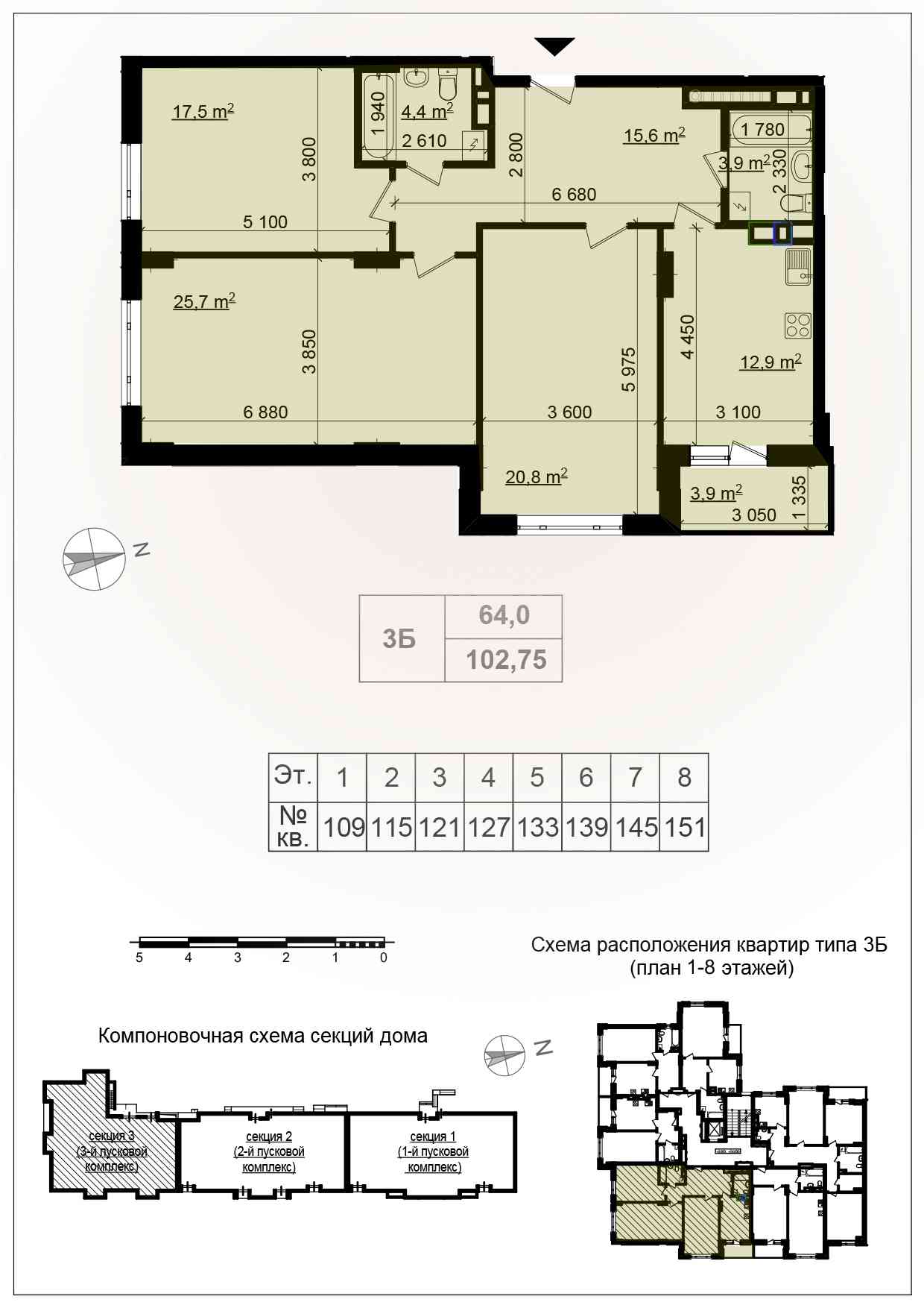 - 3-комнатные — от 86 до 123 м²;