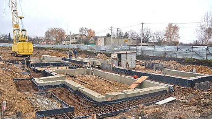 Ведутся работы: по наладке башенного крана; по устройству основания для подкранового пути; по доработке грунта 1-2 секций.