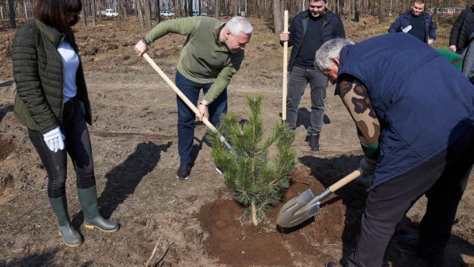 У Журавлівському гідропарку висадять понад 20 тис. дерев. У першій висадці зелених насаджень у сосновому бору взяв участь міський голова Ігор Терехов