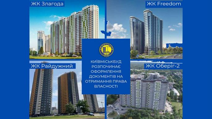 Холдингова компанія «Київміськбуд» інформує, що розпочинається реєстрація документів на отримання права власності на нерухомість у наступних житлових комплексах: