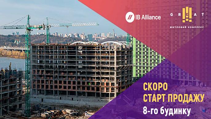 Як повідомили СтройОбзор у компанії IB Alliance 9 грудня почнуться продажі 8-го будинку в багатофункціональному житловому комплексі комфорт-класу Great, який зводиться в Дарницькому районі Києва компаніями IB Alliance та РІЕЛ.