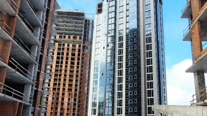 - Будинок №3 - Завершуємо встановлення алюмінієвих віконних вітражів та скління віконних та дверних конструкцій фасаду. Продовжуємо утеплювати будинок негорючою мінеральною ватою та кріпити захисну геомембрану. Триває монтаж профілів для влаштування навісного вентильованого фасаду. Облаштовуємо інженерні мережі з водозабезпечення та водовідводу, слабострумних систем сигналізації і автоматизації, припливно-витяжної вентиляції та насосних станцій. Розпочато випробувальні роботи із запуску ліфтового обладнання. Триває встановлення архітектурного фасадного освітлення.