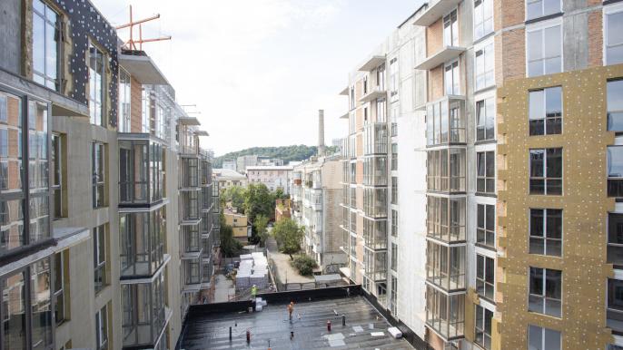 • Будинок 2 - Стартували роботи з влаштування навісного вентильованого фасаду. Тривають роботи з влаштування «мокрих» фасадів, виконано на 25%. Освітлення фасаду виконане на 70%. Встановлення систем опалення й водопроводу, електропостачання, пожежного захисту та слабострумних мереж виконане на 90%. Тривають роботи з пусконалагодження ліфтового обладнання. Влаштування стяжок на фінішній прямій й становить понад 90%. Влаштування штукатурки триває, готовність майже 60%. Стартували роботи з влаштуванню закладних деталей огороджень балконів.