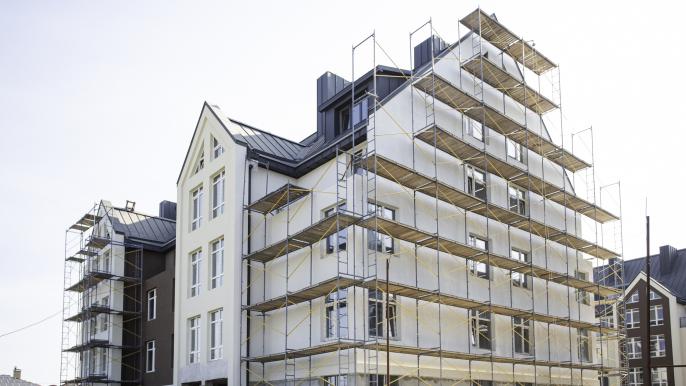 - Будинок 2 - Проводяться роботи з влаштування внутрішніх інженерних мереж: водопостачання та каналізації, опалення та вентиляції, електрики. Виконується гідроізоляція та утеплення цоколя. Проводиться монтаж вікон ПВХ. Частково виконаний монтаж ліфтового обладнання.