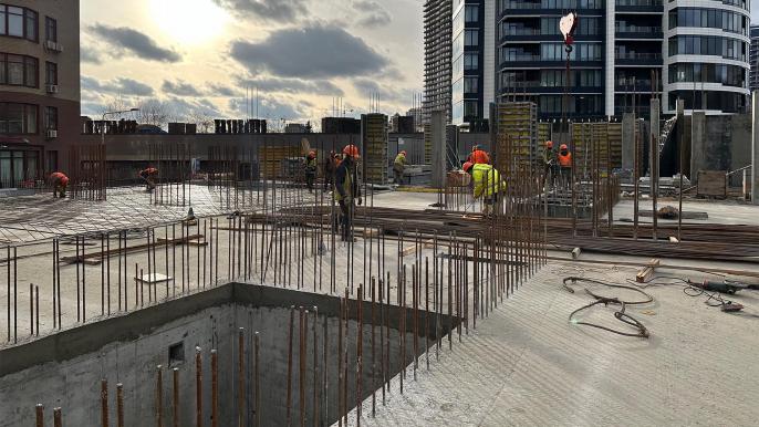 - В другій секції завершено облаштування -2 поверху, тривають гідроізоляційні роботи та зведення монолітних конструкцій -1 поверху. Майстри виконують підготовку до встановлення баштового крану.