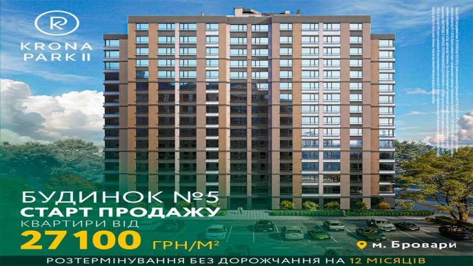 Як повідомили СтройОбзор в компанії Альянс Новобуд на об'єкті ЖК KRONA PARK II (Київська область, м. Бровари, вул. Симоненка Василя, 32) відкрито продаж квартир у будинку №5. Ціна на житлову нерухомість у новому будинку комплексу стартує від 27 100 грн за м2, за умови повної оплати.