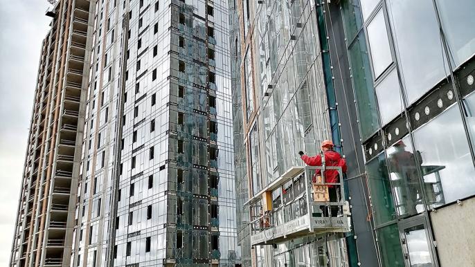 • Сучасні фасади: Виконано 83% робіт з монтажу алюмінієвих вітражів та світлопрозорих конструкцій, які забезпечать ідеальну тепло- та шумоізоляцію.