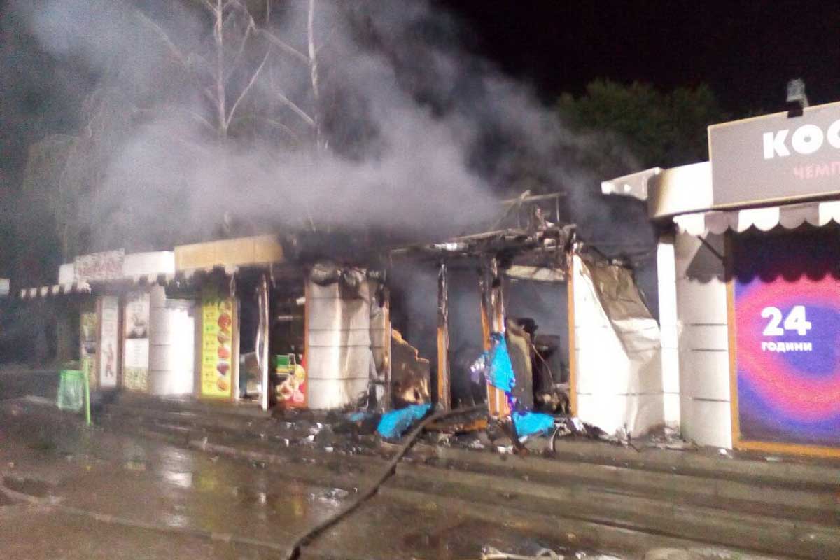 "Площадь пожара составила 80 кв.м. Он развивался очень быстро благодаря горючим элементам внутренней отделки киосков. Огонь потушили в 4.29", - говорится в сообщении.