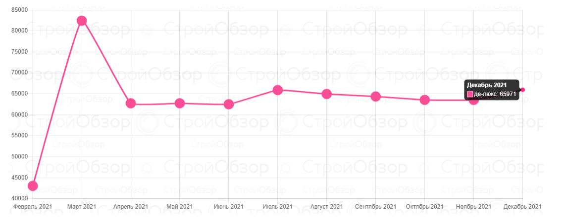 «Де-люкс» тоже подорожал. Сейчас стоимость квадратного метра составляет 66 000 грн., что на 4% выше, чем в ноябре.