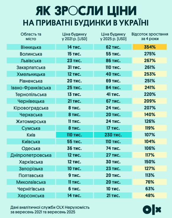 В Днепропетровской области средняя цена частного дома выросла с 12 тыс. долл. в 2021 году до 27 тыс. долл. в 2025 году