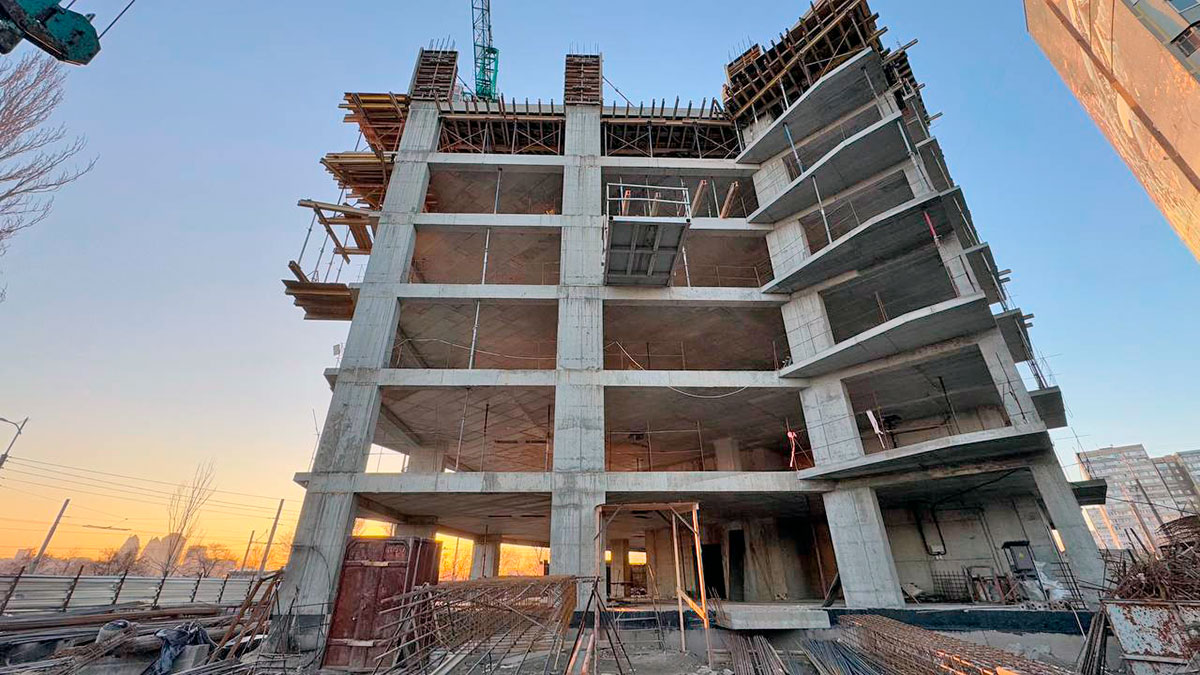 Паралельно завершується заливка залізобетонних конструкцій 8-го поверху. Для забезпечення високої міцності будівлі використовуються інноваційні матеріали та технології монолітного будівництва. Також тривають підготовчі роботи для облаштування міжповерхових перекриттів, що дозволить безперервно переходити до наступних стадій зведення.