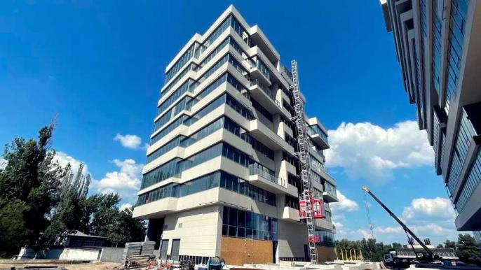 - 2 блок - Скління – виконано на 96%. Місця спільного користування – виконано на 85%. Вхідні двері – встановлені в липні. Підсвічування будівлі – виконано на 80%. Облицювання будівлі – виконано на 70%.