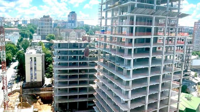 - Residential tower/Житлова вежа: Моноліт практично відлитий. Залишився один поверх каркаса. Йде постачання силікатної цегли для формування комунікаційних шахт та вентиляційних каналів. Виконано систему витяжної вентиляції на 85%.