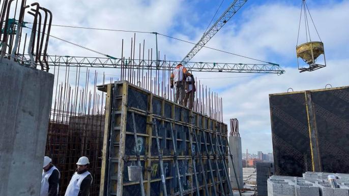 - Завершено заливку вертикальних колон 22-го поверху на 90%.