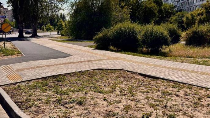 Робочі влаштували невелику частину 2-сторонньої магістральної велодоріжки вздовж Донецького шосе; заклали майбутні пішохідні переходи та велопереїзди перед перехрестям з ДШ; зонували тротуари (це, як писав раніше, вже база для всіх ремонтів); позбулися кишені для громадського транспорту перед "Бруснічкою"; облаштували невеликий громадський простір з деревами та лавками.
