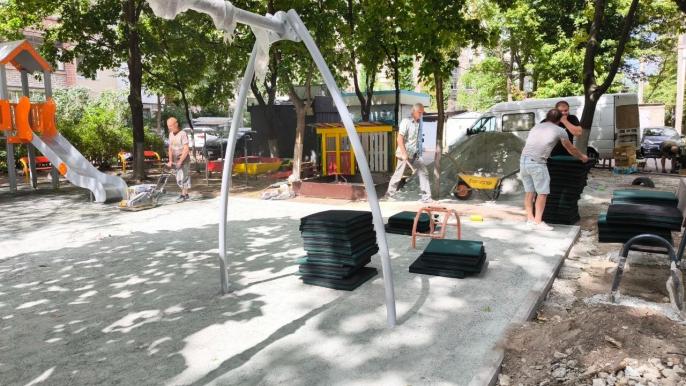 «Підрядники сьогодні робили трамбування основи під укладання гумового покриття. Його тут буде більше 100 кв.м. Після улаштування гуми ми вже почнемо встановлення гойдалки-балансиру, відремонтованої каруселі, гойдалки на пружині та звичайних гойдалок», - розповіла Віолетта Путілова.