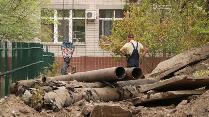 У Дніпрі триває підготовка до опалювального сезону. По вул. Космонавтів кипить робота із заміни трубопроводів теплової мережі.