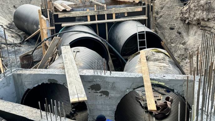 Тут замінюють дві труби, що проходять паралельно. Планують прокласти 492 метри. Труби з якісних матеріалів, які менш піддаються корозії та легше експлуатуються. І важливо, що їх діаметр збільшений удвічі, аби вся вода після рясних дощів з ж/м Перемога-4, ж/м Перемога-5, просп. Героїв, бульв. Слави та інших прилеглих вулиць аж до самого ж/м Сокіл могла без проблем самопливно відводитись до русла річки.