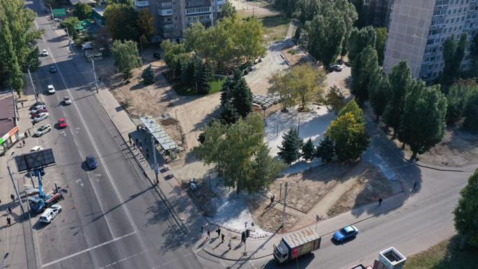 Сейчас на территории сквера, который расположен на пересечении улиц Калиновой и Образцова, начали выкладывать газонное покрытие. Также рабочие устанавливают опоры, на которые будет крепиться ограждение сквера.