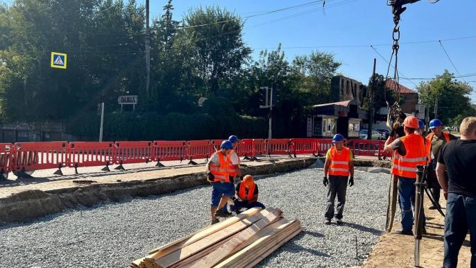 Ремонт планують закінчити до 6 жовтня. На період робіт змінено рух. Об’єднані трамвайні маршрути № 11 та № 15. А трамвайний маршрут № 14 та тролейбусний № 4 поки не працюють. Роботи проводяться у два етапи. Перший – заміна рейок, другий – асфальтування перехрестя. На цьому об’єкті працює бригада із 16 робітників.