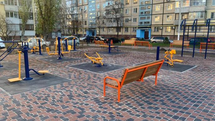 Двор многоэтажки по ул. Большая Диевская, 32 оборудовали лапочками, спортивными снарядами и детскими площадками. Об этом сообщил Глава Администрации Новокодацкого района г.Днепр Олег Денисенко, передает СтройОбзор.