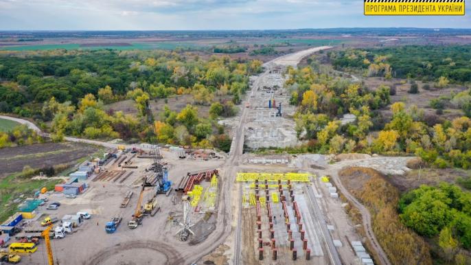 За мостом через канал Днепр-Донбасс завершают последние 29,5 км дороги. Там возводят мосты и тоннели. Самое сложное сооружение - 600-метровая эстакада через реку Орель. Ее монтируют уникальным для Украины способом.