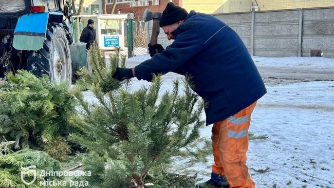 У Дніпрі визначили точки масового збирання ялинок після новорічних свят на прибудинкових територіях. Там їх правильно утилізовують подрібнювачем. Усього в різних районах міста 63 такі майданчики.