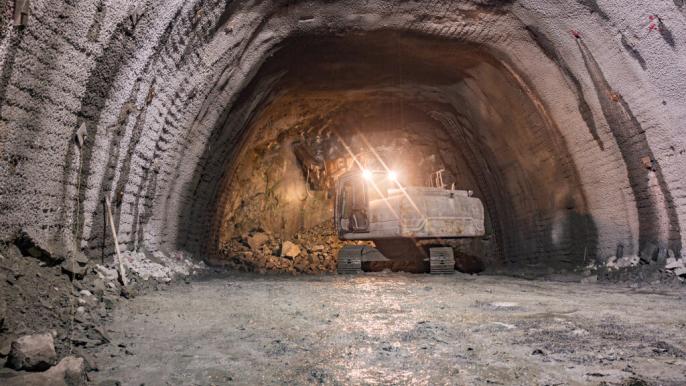 На станции «Театральная» механическим способом продолжают разработку платформенной части станции.