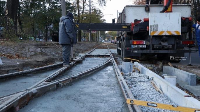 У Дніпрі тривають роботи з ремонту аварійного трамвайного переїзду на перехресті проспекту Лесі Українки та бульвару Батальйону Дніпро.