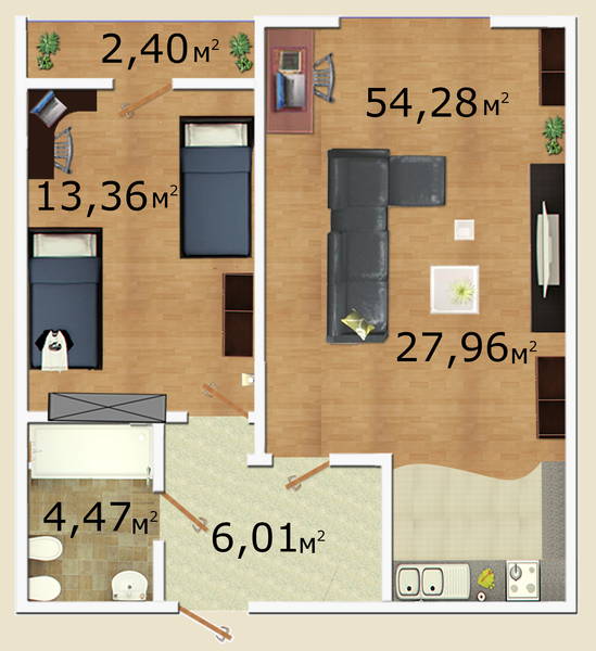 ЖК «Грюнвальд» предлагает квартиры разных форматов: от 1-комнатных до просторных 3-комнатных, площадью примерно от 46 м² до 116 м².