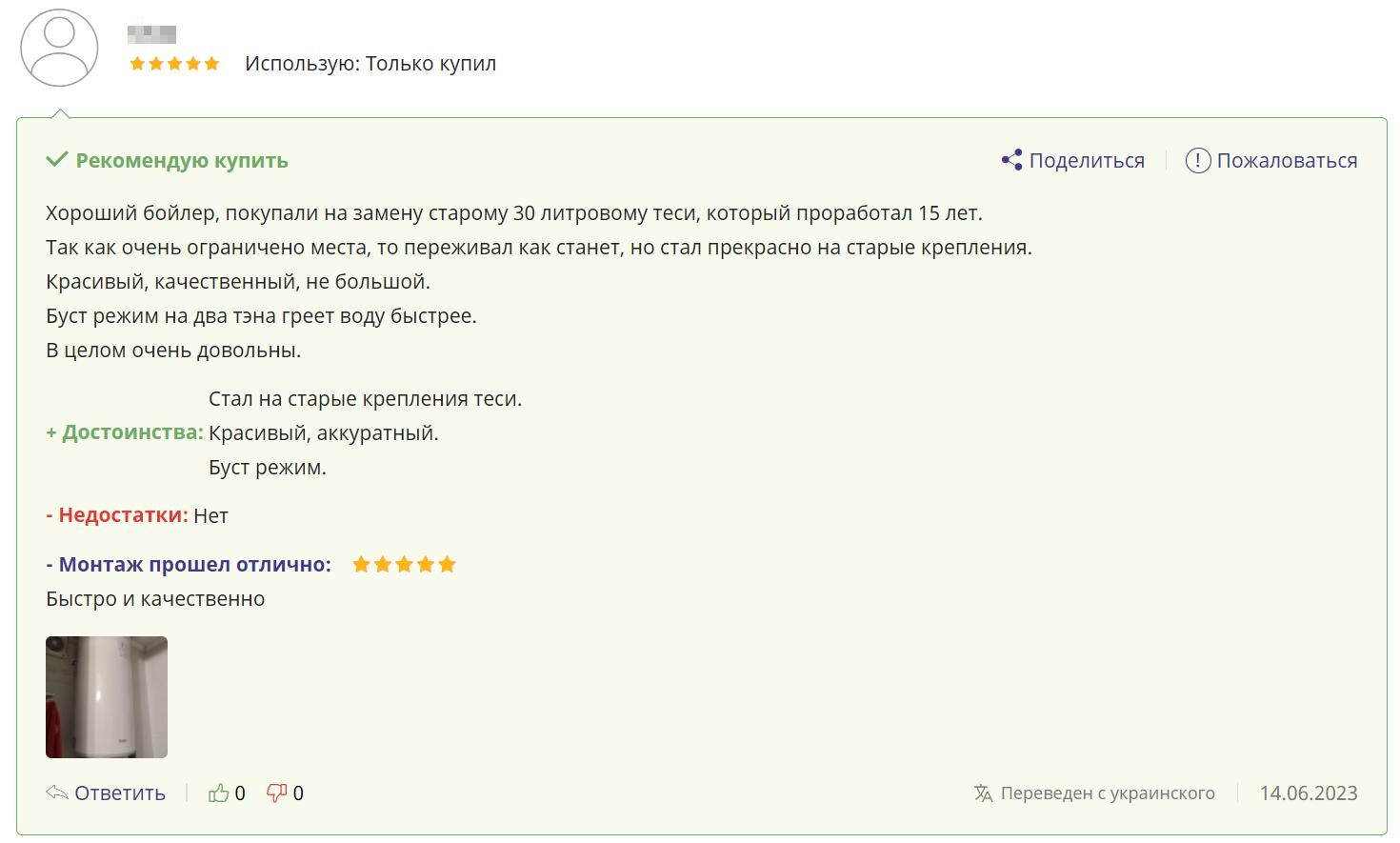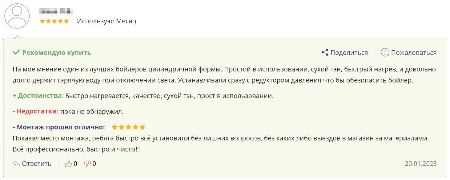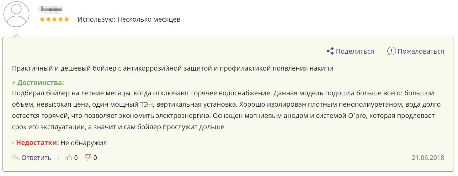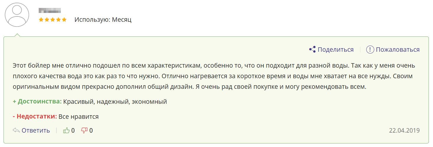 А далее надо анализировать мнения покупателей и самостоятельно делать выводы, какой бойлер лучше – отзывы составлены людьми, которые уже опробовали технику в деле, поэтому такая информация очень поможет вам с выбором.