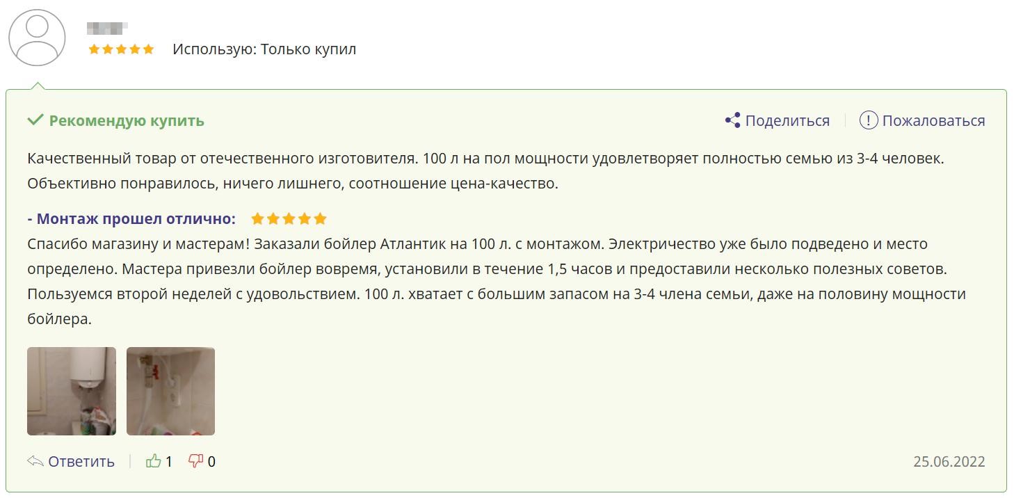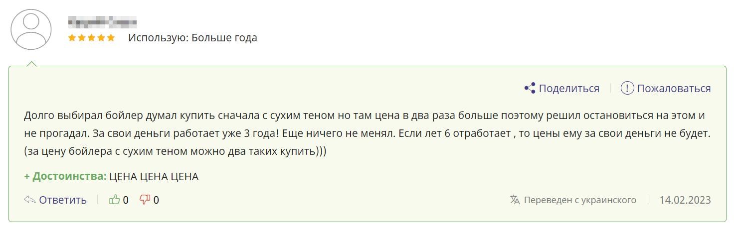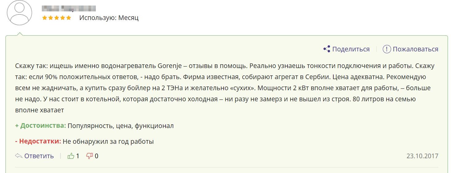 А далее надо анализировать мнения покупателей и самостоятельно делать выводы, какой бойлер лучше – отзывы составлены людьми, которые уже опробовали технику в деле, поэтому такая информация очень поможет вам с выбором.
