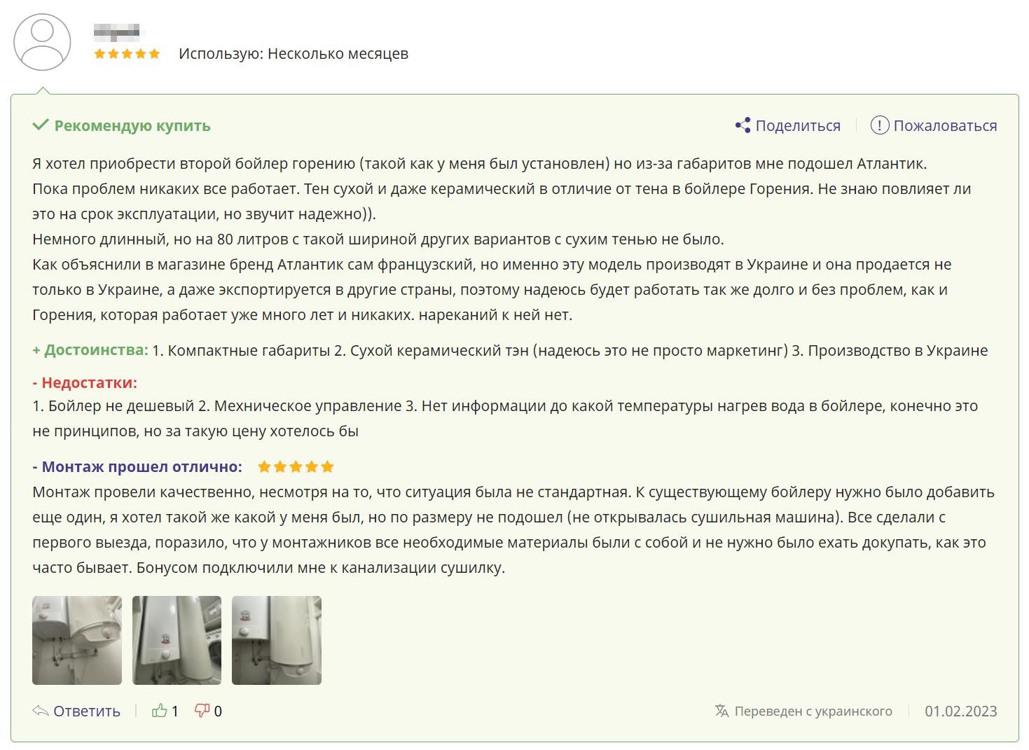 Огромным спросом пользуется и продукция компании Atlantic. Причина проста: у французской фирмы есть производственные мощности в Украине, а это дает как минимум два преимущества. Первое – все модели адаптированы для эксплуатации в наших условиях, т.е. спокойно работают с жесткой водой. Второе – бойлеры Atlantic продаются по доступным ценам. И это подтверждают многочисленные хвалебные отзывы.