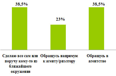 Согласно результатам исследования, 38,5% респондентов готовы самостоятельно решать вопросы, связанные с куплей-продажей недвижимости.