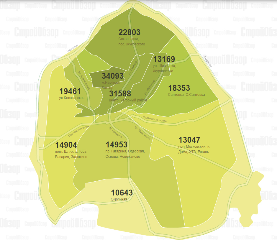 Что касается распределения цен по районам Харькова, то традиционно самые дорогие квартиры расположены в центре и в приближенных районах.