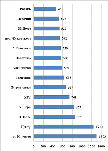 Рисунок 1. - Ценовые показатели в районах г.Харькова, май 2014 г. ($/кв.м)