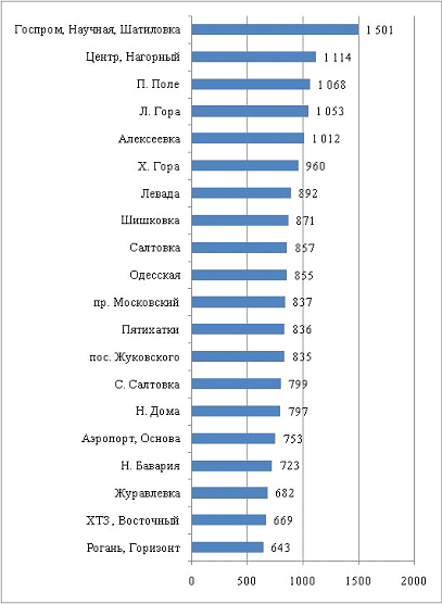 Наибольшее падение цен в ноябре 2014 г. по сравнению с предыдущим месяцем отмечено в районе Шишковки - почти на 15%, пос. Жуковского - 10% и на Северной Салтовке - 9%. В основном же цены снизились на 2-7%. Рост стоимости отмечен на квартиры в центральной части города - на 8-18%.