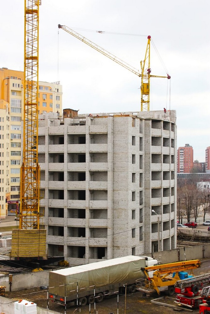 Дом 4 – выполняется кирпичная кладка 10-го этажа.