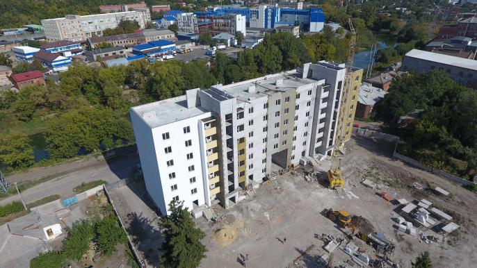 Жилой комплекс «Речной квартал» состоит из трех семиэтажных отдельно стоящих секций