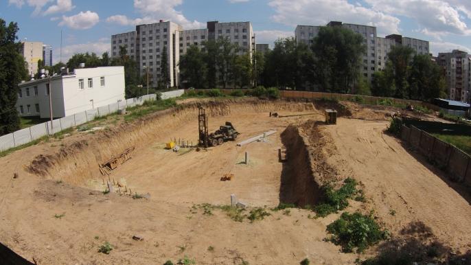 Сейчас - готов котлован по двум секциям. Завершились земельные работы. Ведётся испытание свай.