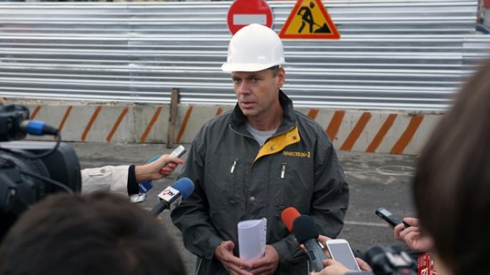 В субботу строители начали устанавливать ограждение на месте проведения строительства. В ближайшие дни дорожники разберут трамвайные пути возле перекрестка. На этой неделе начнутся земляные работы по устройству котлована и бурение скважин. После того, как стены котлована будут укреплены доской и брусом, строители приступят к работам по бетонированию. Подземные бетонные работы планируется завершить до конца зимы, после чего будут выполняться наземные работы.