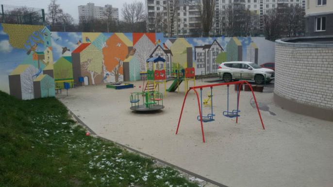Во дворе дома по пр. Юбилейному  (что на Салтовке), недавно появилась арт-стена, расположенная на детской площадке, которая теперь будет радовать играющих детишек и их родителей, сообщили СтройОбзору в компании «Мегаинвестбуд».