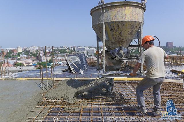 Строители СМУ-25 ОДО «Жилстрой-2» завершили устройство перекрытия над 12-м этажом и забетонировали вертикальные конструкции 13-го этажа. Сегодня залита бетоном первая половина перекрытия над 13-м этажом, полностью работы по устройству перекрытия будут завершены на этой неделе. Начался монтаж каркасов колонн 14-го этажа.