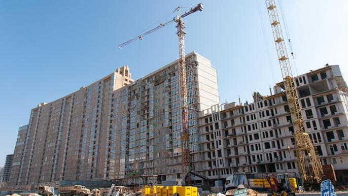 В 5-й секции на 9-м этаже забетонированы вертикальные конструкции, выполнена половина объема работ по кладке наружных стен.