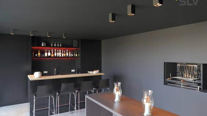 - Накладные точечные светильники способны обеспечить максимальный уровень равномерности засветки помещения благодаря тому, что размещать их, в отличие от люстры, можно не только в центре комнаты, но и по всему потолку.