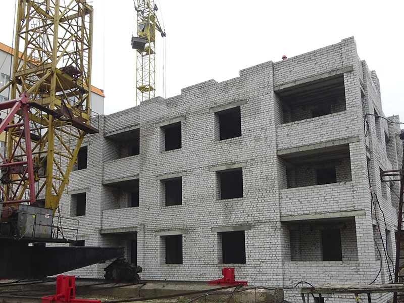 На текущий момент, в доме строителями осуществляется кирпичная кладка наружных и внутренних стен 4-го этажа. Все работы ведутся согласно утвержденного плана.