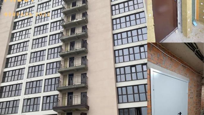 - 4 секция. Устанавливаются лифтовые двери на этажах. Выполняется монтаж наружных сетей и ливневой канализации. Монтируются колодцы соединяющие трубопроводы. Заканчиваются работы по устройству кровли во всем доме. Выполнены работы по устройству стяжки пола в местах общего пользования и на площадке противопожарных лестницах всего дома.