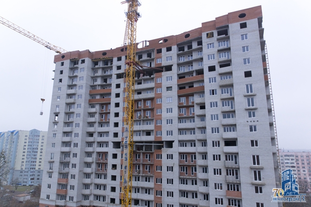 Компания «Жилстрой-2» продолжает строительство 19-этажного жилого комплекса «Дом с ротондами» по ул.Сухумской (перекрёсток улиц Ромена Роллана, Космической и Клочковской).