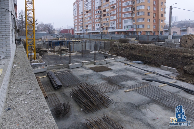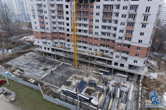 ЖК «Дом с ротондами»Строители УНР-427 забетонировали 70% сложной многоуровневой конструкции покрытия над техническим этажом. Практически завершена кладка наружных стен, каменщики ведут кладку внутренних перегородок на 19-м этаже.